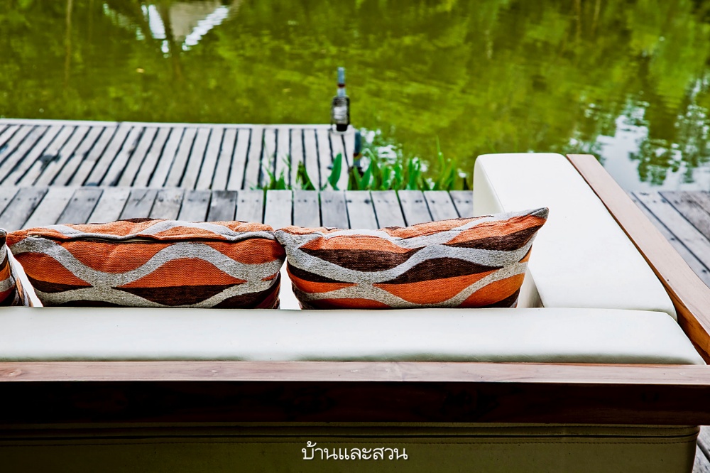 “ตอนที่ออกแบบบ้านผมยังโสด ก็ต้องการระเบียงริมน้ำไว้ปาร์ตี้สบายๆกับเพื่อนฝูง จึงเน้นระเบียงขนาดใหญ่ ภายในบ้านก็ง่ายๆ มีแค่ห้องนอน ห้องน้ำ และห้องรับแขกที่ปรับเปลี่ยนเป็นห้องนอนได้จริงๆ แล้วบ้านหลังนี้ผมอุปมาเหมือนค่อยๆเดินเข้ามาในป่า ผมแอบเรียกว่าเป็นสไตล์ Jungle Modern คือบ้านโมเดิร์นที่มีอารมณ์ของป่านิดๆ แอบใส่ความตื่นเต้นด้วยพื้นหรือหลังคากระจกเป็นบางช่วง”