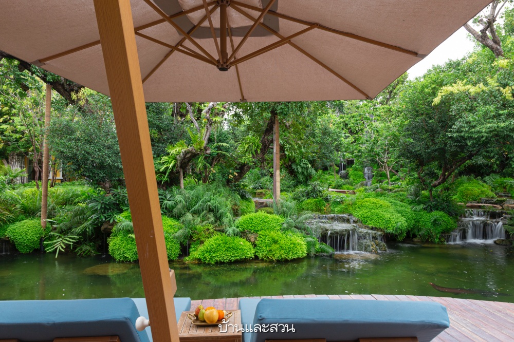 ความสุขของการสร้างพื้นที่สีเขียวในบ้าน ไม่ได้อยู่ที่งบประมาณหรือขนาด แต่อยู่ที่การได้ใช้เวลาอยู่ในสวนให้ธรรมชาติสีเขียวและสายน้ำช่วยเติมพลังให้จิตใจ นอกจากสวนแห่งนี้จะทำหน้าที่ส่งมอบความสุขให้กับทุกคนในครอบครัวแล้ว ยังเชื่อมโยงความประทับใจให้กับผู้เป็นเจ้าของ ได้หวนรำลึกถึงความทรงจำในอดีตกับผืนป่าน้ำตกที่เขารัก