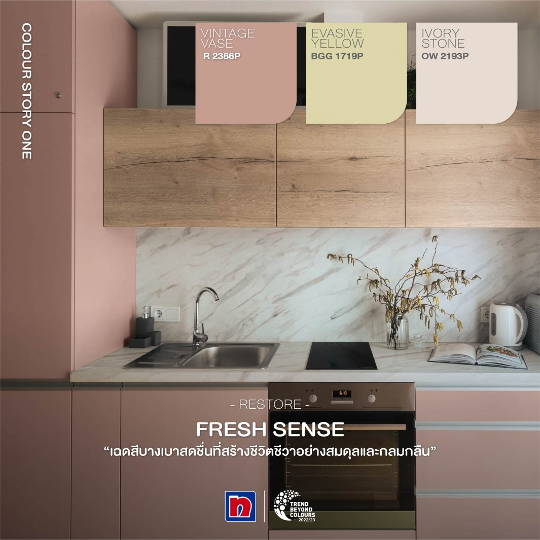 เติมรอยยิ้มให้กับบ้านด้วยสีพาสเทล”SOULMATE สีม่วงของดอกไลแลค ตัวแทนแสงอาทิตย์ยามเย็น เพิ่มความมีชีวิตชีวาด้วย ZINNIA SCENT สีชมพูดูเชื้อเชิญให้เริ่มบทสนทนา และDRIED PALM ที่พร้อมต้อนรับในทุกที่และทุกสถานการณ์