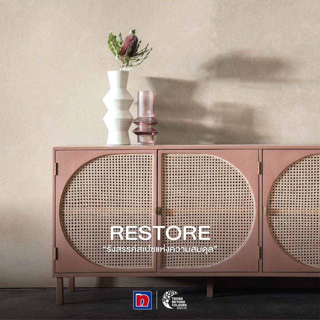 RESTORE นำเสนอเฉดสีที่จะสร้างพลังบวก และบรรยากาศแห่งการผ่อนคลาย ช่วยฟื้นฟูทุกประสาทสัมผัสส่งเสริมสุขภาวะแบบองค์รวม เพื่อสร้างสมดุลให้ชีวิตอีกครั้ง สีสันจากธรรมชาติที่อ่อนโยน ผสมผสานกับผิวสัมผัสอันปลอบประโลมใจ จึงเป็นหัวใจสำคัญของการสร้างพื้นที่ส่วนตัวที่สงบและร่มเย็น