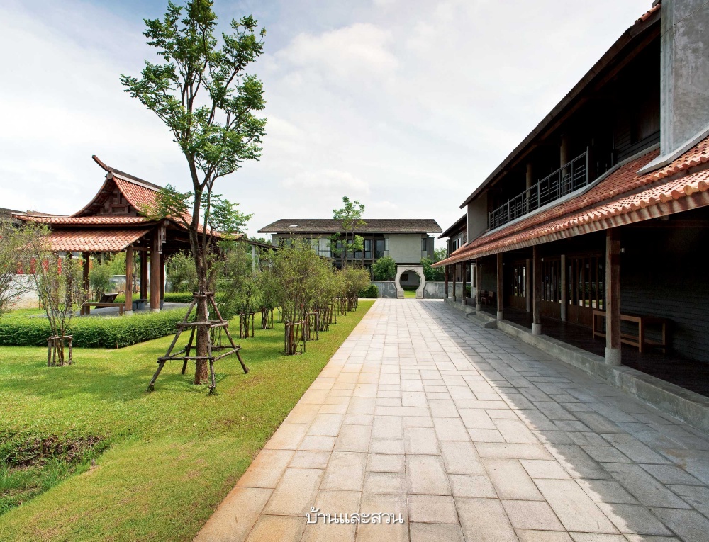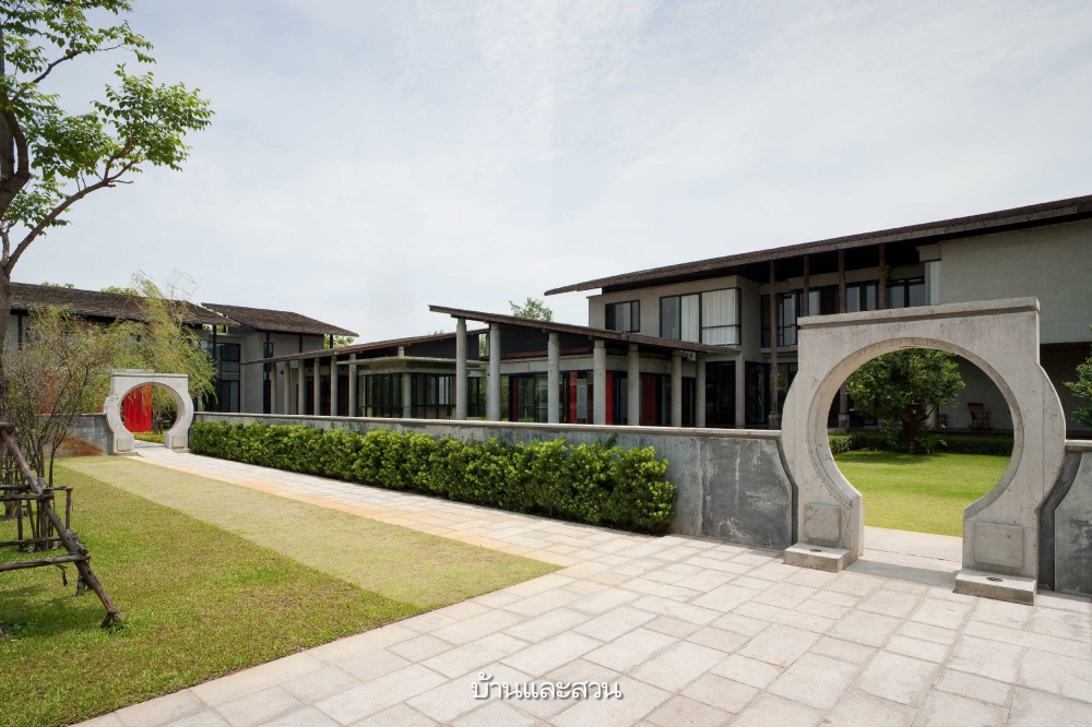 คุณชาตรี ลดาลลิตสกุล สถาปนิกและผู้ก่อตั้งต้นศิลป์ สตูดิโอ ได้นำเอกลักษณ์ของสถาปัตยกรรมจีนมาผสมผสานกับสถาปัตยกรรมสมัยใหม่ กลายเป็น บ้านจีนโมเดิร์น เพื่อสะท้อนประวัติความเป็นมาของครอบครัว และคงภาพความอบอุ่นของครอบครัวนี้เอาไว้ เน้นความใกล้ชิดของคนในครอบครัวด้วยการออกแบบบ้านแต่ละหลังให้มีทางเดินเชื่อมถึงกันได้แต่ยังคงความเป็นส่วนตัว โดยเว้นระยะห่างของบ้านแต่ละหลังด้วยคอร์ตหญ้าและสวนสไตล์จีนผสมผสานความเรียบง่ายแบบสวนสไตล์ญี่ปุ่น บริเวณกลุ่มบ้านเหล่านี้มีศูนย์กลางอยู่ที่บ้านของอาม่า ซึ่งเป็นที่รวมจิตใจของลูกหลาน