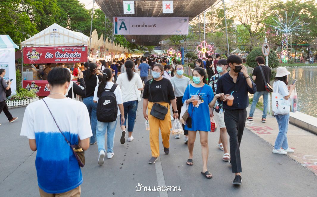 โซน A ตลาดน้ำนนทรี หลายคนที่อยู่อาศัยในเมืองและเดินทางมาทางรถไฟฟ้า BTS เมื่อลงจากสถานีเข้ามาทางประตูพหลโยธินจะพบกับโซนตลาดน้ำรอบบริเวณหอประชุมใหญ่และศาลาหกเหลี่ยม ซึ่งอัดแน่นไปด้วยร้านอาหารทั้งขนาดเล็กและขนาดใหญ่ที่ส่วนใหญ่มาจากตลาดน้ำชื่อดังรอบกรุงเทพมหานคร สำหรับเดินช้อปปิ้งภายในบรรยากาศริมน้ำที่ชวนให้ย้อนไปถึงตลาดน้ำโบราณในสมัยก่อนหรือในต่างจังหวัด เรียกได้ว่าอิ่มพุงกางตั้งแต่มาถึงในงานทีเดียว