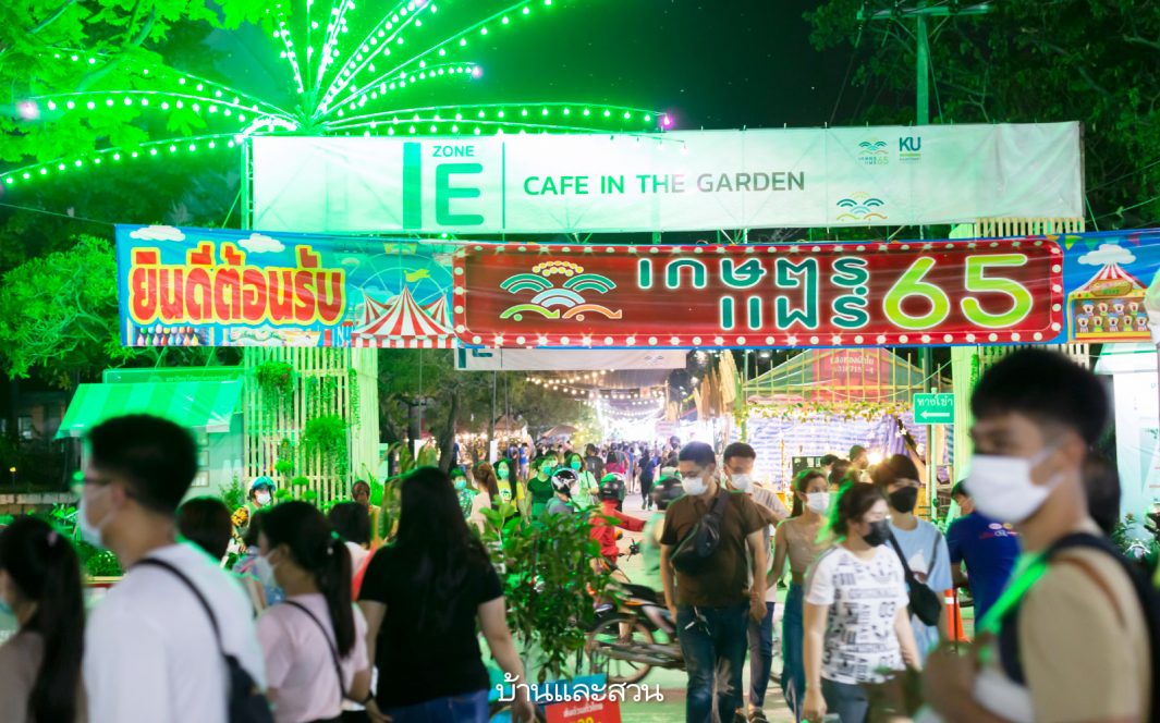 ใครที่กำลังคิดถึงบรรยากาศความสนุกแบบงานวัด มุมนี้พลาดไม่ได้ โซน E Cafe in the garden บริเวณที่จัดคือในสวนรอบสำนักพิพิธภัณฑ์และวัฒนธรรมการเกษตร นอกจะได้ซื้อเครื่องดื่มมานั่งรับประทานในสวนแล้ว ยังมีสินค้า DIY and IDEA และอุปกรณ์ตกแต่งบ้านจำหน่ายในบริเวณนี้อีกด้วย รวมไปถึงสวนสนุกและเครื่องเล่นแบบงานวัดทั้งชิงช้าสวรรค์ เกมส์ปาโป่งหรือยิงปืนแลกของขวัญ