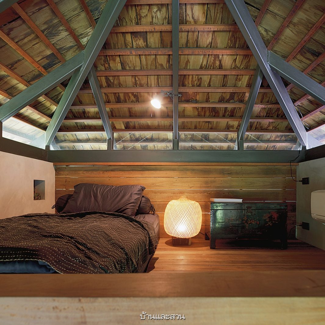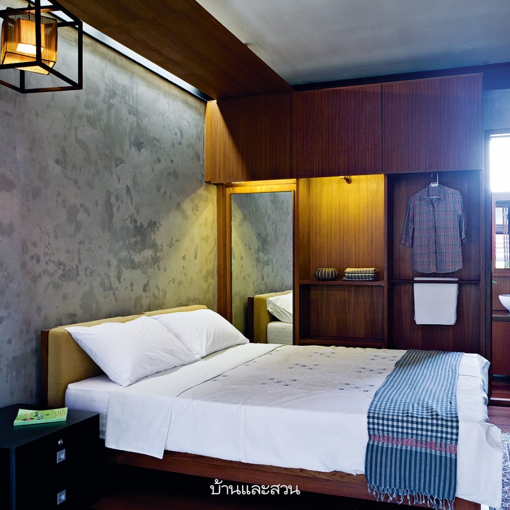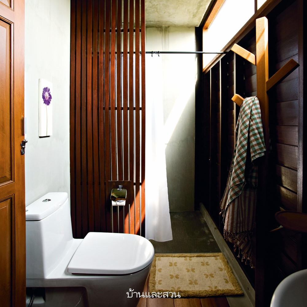 บ้านหลังนี้เริ่มต้นจากความต้องการอยากได้บ้านน่าอยู่สบาย ไม่จำเป็นต้องเปิดเครื่องปรับอากาศตลอดเวลา และมีพื้นที่ใช้สอยเท่าที่จำเป็นต่อการใช้ชีวิตจริงๆ โดยซื้อใช้ไม้จากบ้านเก่ามาทำเป็นโครงสร้างไม้ของบ้านชั้นบน ส่วนผนังทำเป็นปูนผิวขัดมัน เพราะเป็นวัสดุหลักที่เจ้าของบ้านชอบอีกทั้งยังดูแลรักษาง่ายและทนทาน ส่วนที่ขาดไม่ได้คือชานทั้งด้านหน้าและหลังของบ้านที่ใช้งานได้ตลอดวัน เพราะเมื่อเปิดประตูหน้าหลังแล้วจะมีลมที่พัดผ่านโถงกลางบ้านสู่ชานนั่งเล่น ทำให้บ้านไม่ร้อนและระบายความชื้นของส่วนครัวและห้องน้ำได้เป็นอย่างดี >> อ่านต่อ