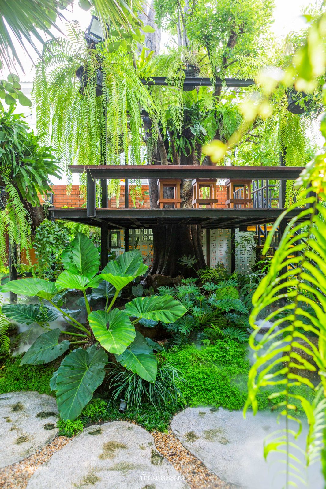 สวนนี้เป็นการทำงานร่วมกันของเจ้าของและผู้ออกแบบก็ว่าได้ ทั้งคุณบุ๊งและคุณต้องช่วยกันเลือกต้นไม้ ฟังก์ชันต่าง ๆ ในสวน ไม่ว่าจะเป็นชั้นลอยของอาคารที่เปรียบเหมือนบ้านต้นไม้ มุมถ่ายรูปต่าง ๆ รวมไปถึงดีไซน์ของตัวอาคารรอบๆ สวน คุณผู้อ่านสามารถแวะไปชมทะเลหมอกในสวนป่าได้ที่ “คาเฟ่ ก้านทอง ติ่มซำ” จังหวัดพระนครศรีอยุธยาครับ