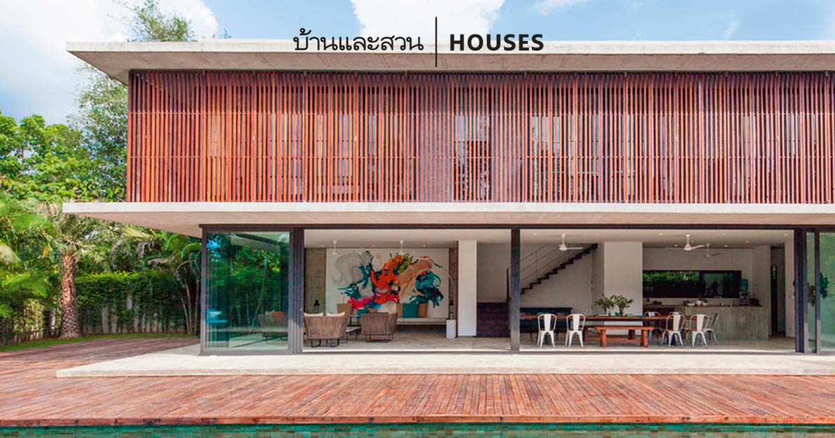 บ้านโมเดิร์นใต้ถุนสูงเรียบเท่ริมบึงกว้างที่สอดแทรกไอเดียความเป็นไทยอยู่ในทุกรายละเอียดของบ้านได้อย่างแนบเนียน โดยนำโจทย์ของคุณพ่อที่ชื่นชอบวิถีความเป็นอยู่อย่างเรียบง่ายแบบบ้านเรือนไทยสมัยก่อน มาพบกันครึ่งทางกับลูกชายที่ขอตีความใหม่ในภาษาโมเดิร์นที่เหมาะกับยุคสมัย แต่ไม่ผิดแปลกไปจากธรรมชาติโดยรอบมากนัก จนออกมาเป็นบ้านสไตล์โมเดิร์นทรอปิคัลเชิงทดลองที่พิสูจน์ให้รู้ว่าคนสามารถอยู่กับธรรมชาติได้จริง >> อ่านต่อ