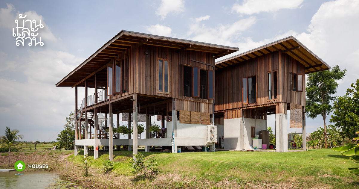 บ้านใต้ถุนสูงโปร่งโล่ง ที่ออกแบบภายใต้โครงสร้างเรียบง่าย ตัวบ้านสามารถระบายอากาศได้ดี เปิดรับความร่มรื่นของต้นไม้สีเขียว และสระน้ำข้างบ้าน ช่วยให้บ้านไม่ร้อน และสามารถทำกิจกรรมต่างๆที่ใต้ถุนบ้านได้ เพิ่มลูกเล่นด้วยการโชว์สัจจวัสดุ ซึ่งทั้งหมดนี้เป็นความตั้งใจของลูกที่เลือกสิ่งดีๆ ให้เหมาะกับคุณพ่อคุณแม่ >> อ่านต่อ