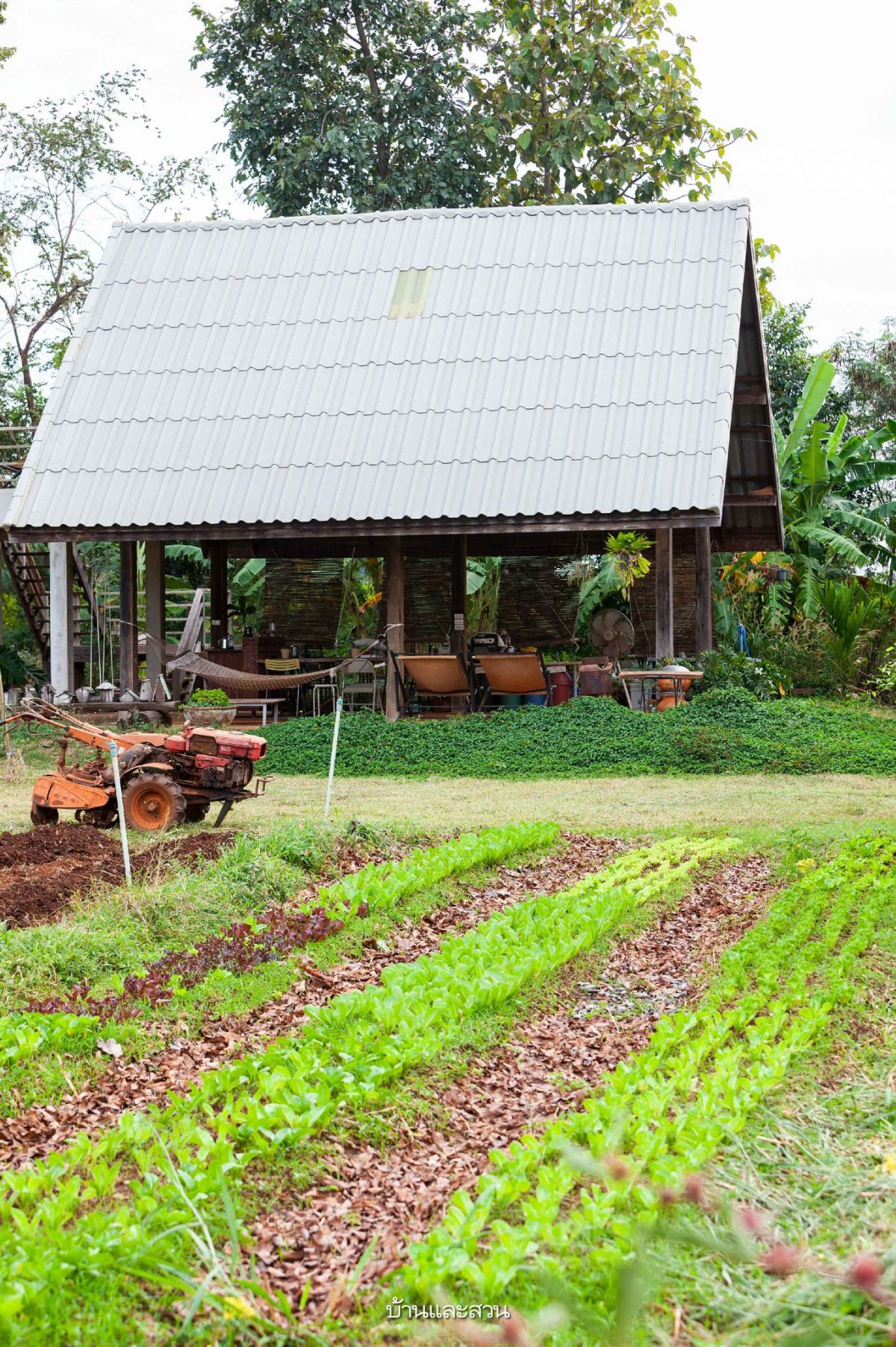บ้านไม้หลังเล็ก แบบชั้นเดียวขนาด 4×4 เมตรที่สร้างไว้แค่พออยู่เพื่อให้สะดวกกับการทำงานภายในไร่ โดยใกล้ๆ กันยังมีบ้านไม้ยกใต้ถุนสูงอีกหลังไว้สำหรับใช้งานอเนกประสงค์ >> อ่านต่อ