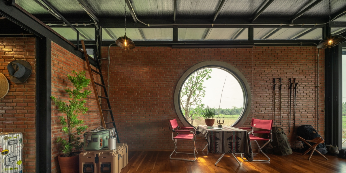 บ้านฟาร์มกลางนา 40 ไร่ในจังหวัดหนองบัวลำภูที่ออกแบบให้สอดรับกับกิจกรรมการทำเกษตรอินทรีย์สมัยใหม่ โดยแบ่งพื้นที่ออกเป็น 3 ส่วน ได้แก่ ส่วนในบ้านที่มีห้องนอนเป็นชั้นลอย ห้องน้ำ ครัวเล็กๆ และพื้นที่ห้องนั่งเล่น ส่วนชานที่มีหลังคา และส่วนชานหลังคาที่ไม่มีหลังคา เติมกิมมิกเก๋ๆด้วยการเลือกใช้เฟอร์นิเจอร์แคมปิ้งที่ยกย้ายได้ตามการใช้งาน >> อ่านต่อ