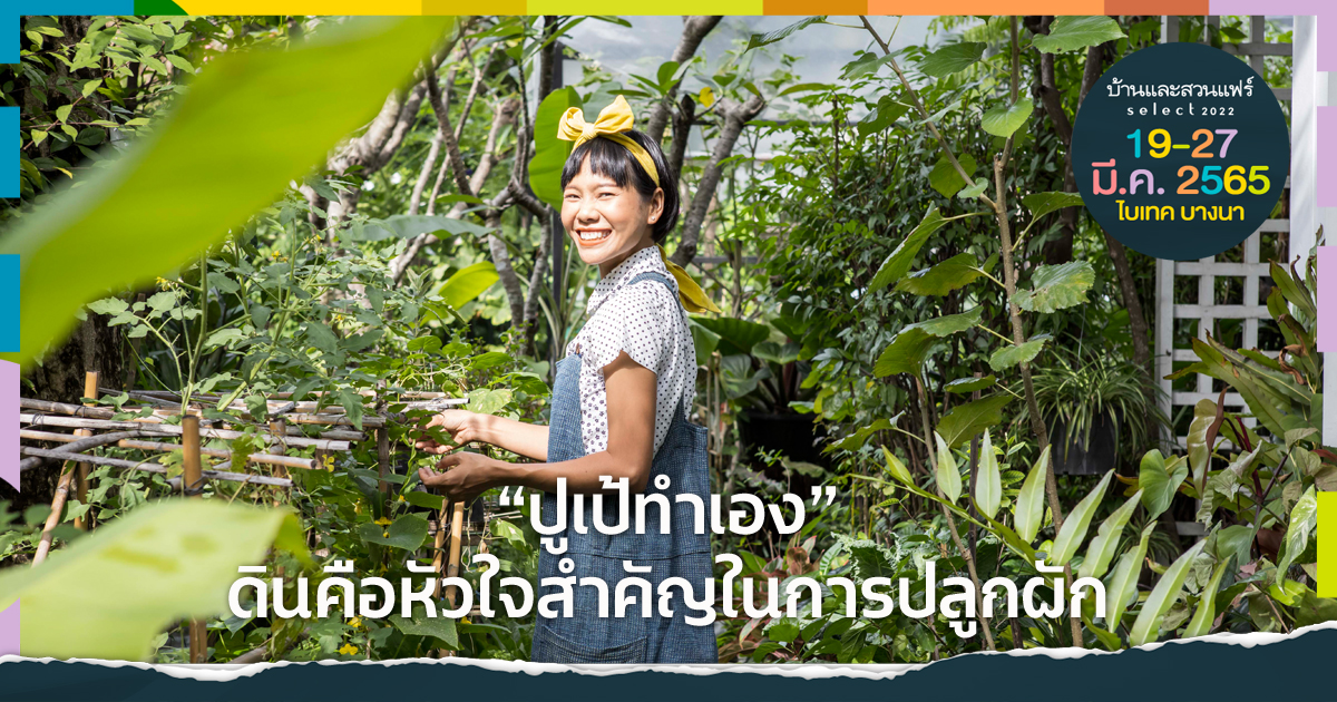ปูเป้ทำเอง หรือคุณปูเป้ สุพัตรา ไชยชมภู อีกหนึ่ง Urban farmer ที่มาแชร์ความรู้ในโซน Garden&Farmในงานบ้านและสวน select 2022 ในมิติของวัสดุปลูกพืชผักสวนครัว ซึ่งตัวเธอเองได้ผ่านการลองผิดลองถูก เรียนรู้ จนค้นพบหัวใจสำคัญของดินปลูกที่สามารถทำเองได้จากครัวเรือนของเรา