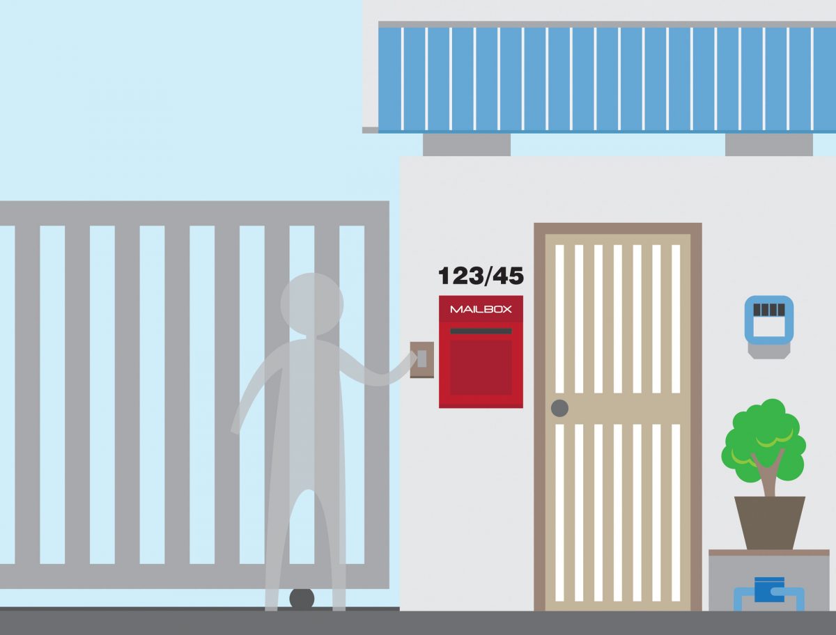 ตู้ไปรษณีย์ ควรใช้ตู้แบบที่สามารถรองรับเอกสารขนาดประมาณ A4-A3 ได้ เพราะคงไม่ดีแน่ถ้านิตยสารเล่มโปรดจะถูกยัดเข้าไปในตู้จนยับเสียหาย เลือกตู้ไปรษณีย์ที่ใช้ได้จริง ทนแดดทนฝน ไม่ทำให้จดหมายและเอกสารต่าง ๆ เสียหายก่อนการเปิดไขในครั้งต่อไป นอกจากนี้ตู้ไปรษณีย์ กริ่ง และเลขที่บ้านควรเกาะกลุ่มอยู่ในพื้นที่เดียวกันเพื่อให้มองหาได้ง่าย