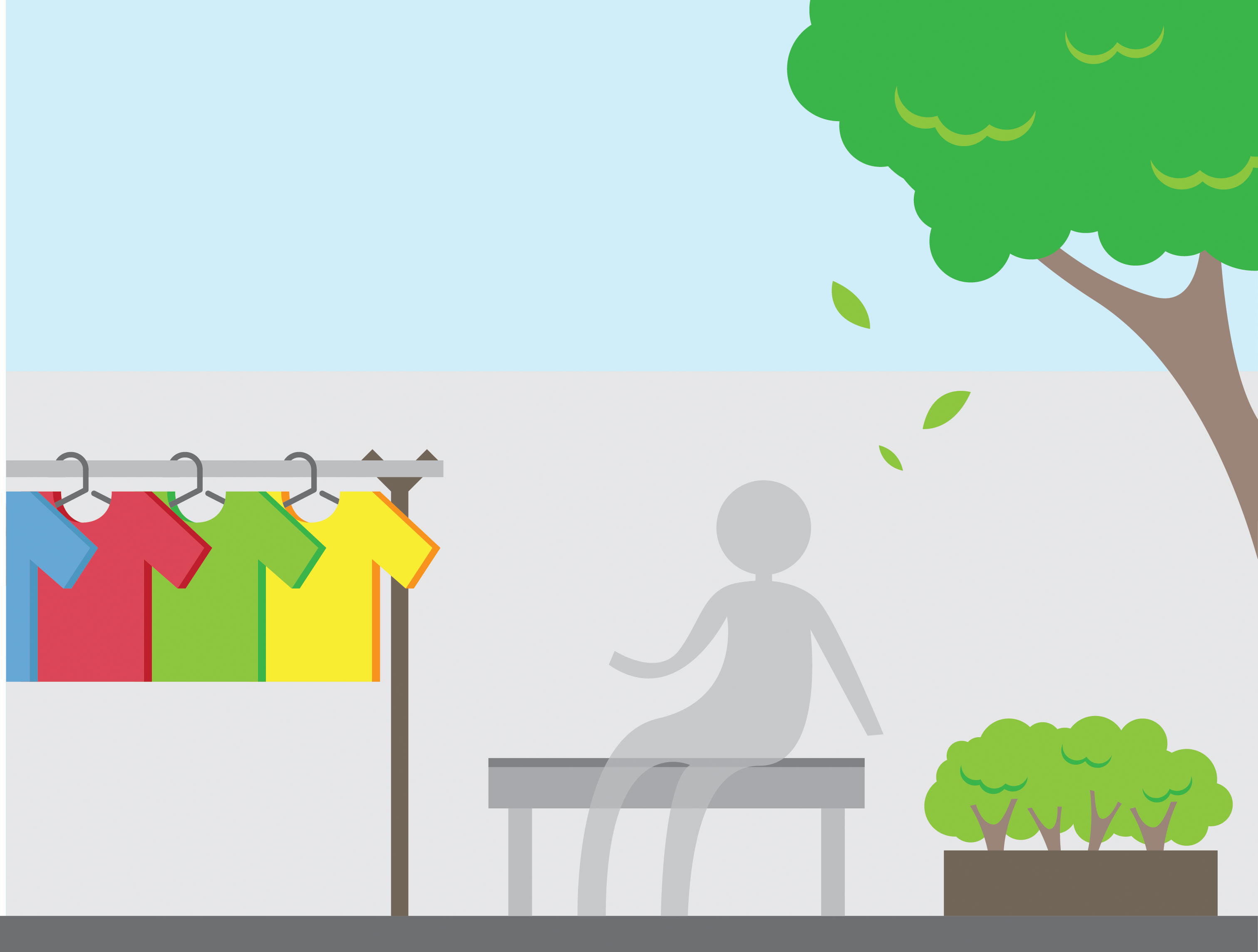 ตากผ้า เป็นเรื่องที่เห็นได้บ่อย เมื่อพ่อบ้านขับรถไปทำงาน แม่บ้านก็จะเข็นราวตากผ้าออกมารับแดดทันที ยิ่งถ้าบ้านของคุณหันหน้าไปทางทิศใต้ด้วยแล้ว คงไม่แคล้วรับแดด พร้อมได้กลิ่นหอมฉุยจากผ้าที่ตากเป็นแน่แท้ แต่ถ้าไหน ๆ กิจกรรมตากผ้าของคุณก็จำเป็นต้องมาอยู่หน้าบ้านแล้ว ลองออกแบบให้มีการหลบมุมหลบสายตาจากเพื่อนบ้านเสียหน่อยก็ดีเหมืนกัน โดยจัดเป็นพื้นที่สำหรับแขวนผ้าตากผ้าผสมผสานไปกับสวนหน้าบ้านก็ไม่เลวเหมือนกัน เป็นสัดส่วน และดูไม่รกรุงรัง