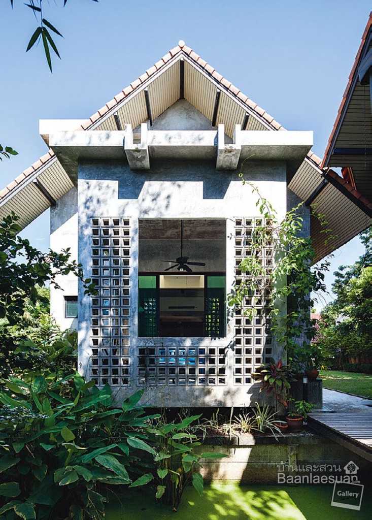 On the outside, the house was made of concrete masonry, for the most part unornamented. Closer examinations revealed elements of a true Thai style personality – ideal house orientation, suspended ground floor, and the so-called breathing wall design.
