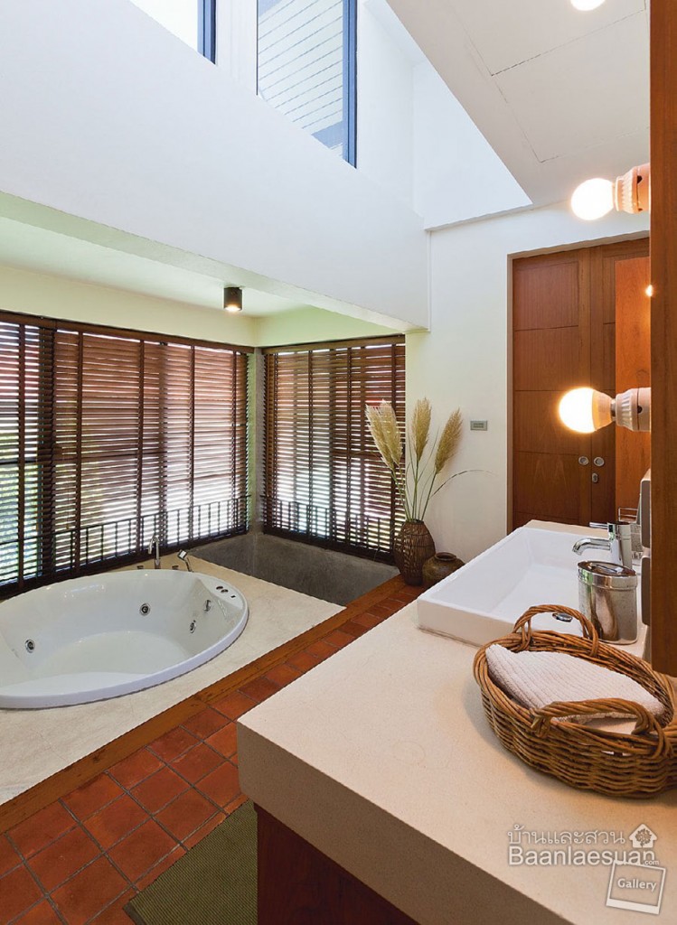 Case in point, this Thai style house is about incorporating traditional wisdom in a modern home that performs well in meeting local climate needs. All aspects of the environment are taken into account to enhance air circulation, calmness and comfort, as well as protect against heat and humidity.