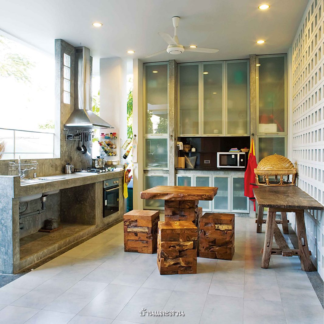 “เมื่อใดที่มีงานเลี้ยงและรวมตัวกัน บ้านหลังของคุณพ่อแม่ก็จะเป็นเหมือนห้องครัวที่คอยส่งเสบียงอาหารคาวหวานมาให้อย่างไม่ขาดสาย บ้านครอบครัวอื่นก็อาจจัดเตรียมเรื่องของพื้นที่โดยรอบบ้าน ส่วนบ้านหลังนี้ก็เป็นเหมือนห้องนั่งเล่นขนาดใหญ่ที่พร้อมจะรองรับทุกคนในรั้วนี้” คุณดลยพรเล่าถึงกิจกรรมของแต่ละบ้านให้ฟัง