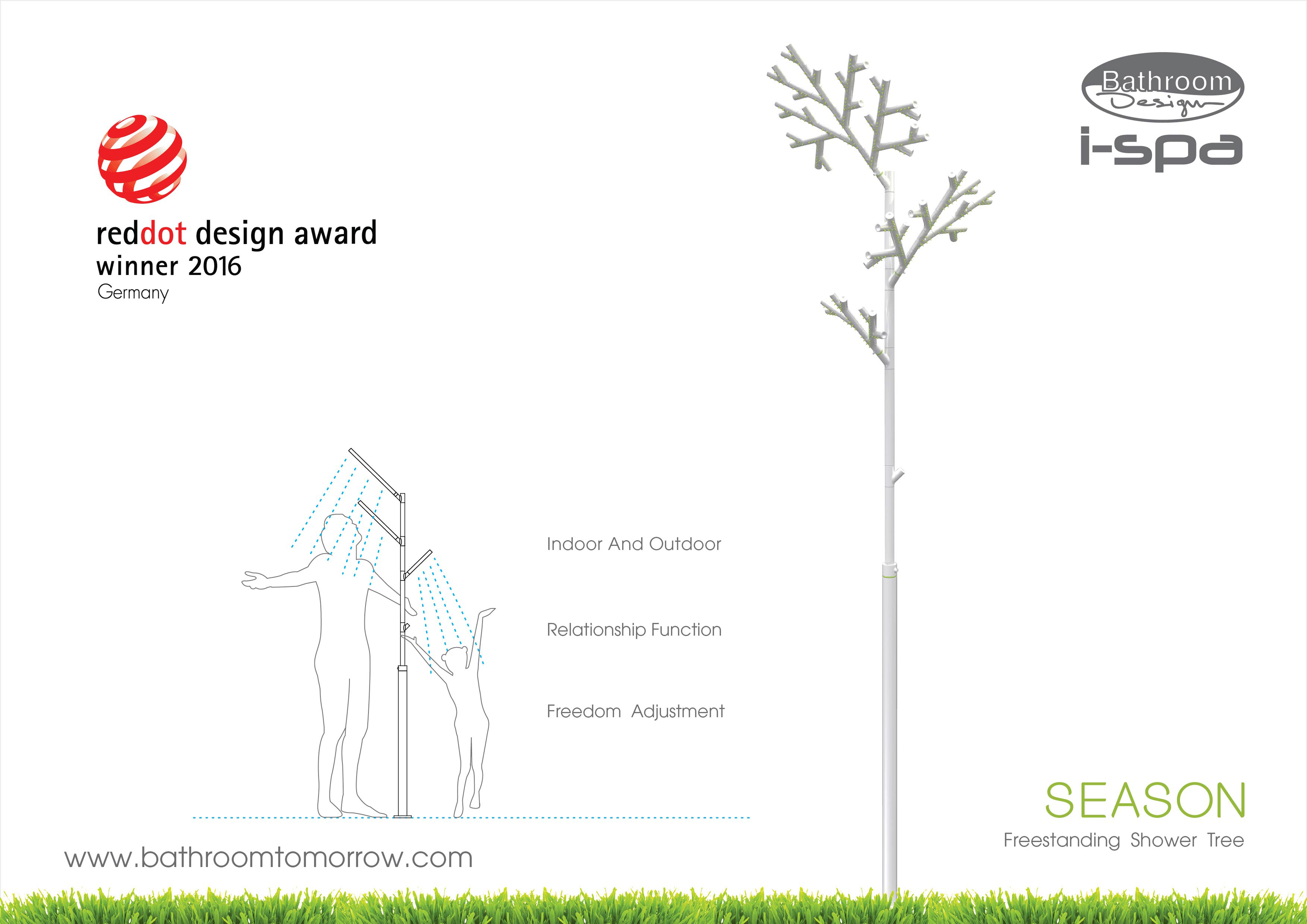 และ Season (ซีซัน) ชุดฝักบัวอาบน้ำฟรีสแตนด์ (Freestanding Shower Tree) หน้าตาดูคล้ายต้นไม้แผ่กิ่งก้าน เสมือนได้อาบน้ำท่ามกลางสายฝน สามารถปรับการใช้งานได้ถึง 3 ระดับ โดยเปิด-ปิด และเปลี่ยนทิศทางของน้ำได้อย่างอิสระ เปรียบเสมือนช่วงเวลาของต้นไม้ที่มีการเปลี่ยนแปลงไปตามฤดูกาล
