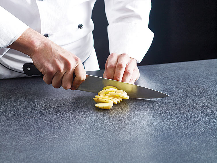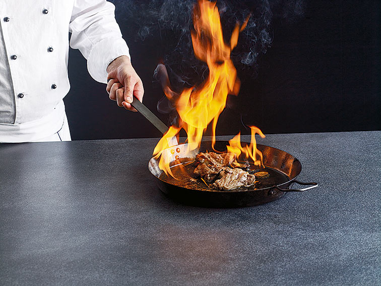 ครัวถือเป็นอีกหนึ่งห้องสำคัญในบ้าน และยุคนี้ครัวก็ไม่จำเป็นต้องอยู่แบบหลบ ๆ ซ่อน ๆ อีกต่อไป ด้วยนวัตกรรมการผลิตวัสดุในปัจจุบัน นอกจากจะเพิ่มความคงทนแข็งแรงแล้ว ตัววัสดุเองยังมีดีไซน์สวยหรู หนึ่งในนั้นที่อยากแนะนำก็คือ GRANDE Collection กระเบื้องพอร์ซเลน ระดับพรีเมียม ซึ่งใช้เทคโนโลยีชั้นสูงจากโรงงาน COTTO ในประเทศอิตาลี สามารถผลิตกระเบื้องที่มีขนาดใหญ่ถึง 1.60 x 3.20 เมตร (หนา 12 มิลลิเมตร) จึงเหมาะอย่างยิ่งสำหรับกรุเคาน์เตอร์ครัว เพื่อการทำงานครัวได้หลากหลาย ด้วยคุณสมบัติที่มีความแข็งแรง ทนต่อรอยขีดขวน ทนต่อกรด-ด่าง ไม่ดูดซึมน้ำ ไม่เกิดคราบ ทนความร้อน และยังทำความสะอาดง่าย