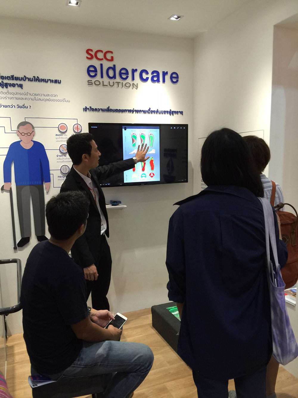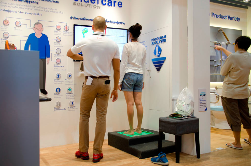 - รู้จัก “ตัวเอง” ที่ให้ผู้สูงอายุสามารถรู้ถึงสมรรถภาพของร่างกายที่เปลี่ยนแปลงเมื่อก้าวเข้าสู่ช่วงสูงวัย ด้วยเครื่องวิเคราะห์แรงกดฝ่าเท้า เพื่อวิเคราะห์แนวโน้มของการเกิดการหกล้ม และการวัดตัวของ ผู้สูงอายุแบบ customize เพื่อออกแบบและติดตั้งผลิตภัณฑ์ให้เหมาะสมกับการใช้งานของผู้สูงอายุ แต่ละบุคคล