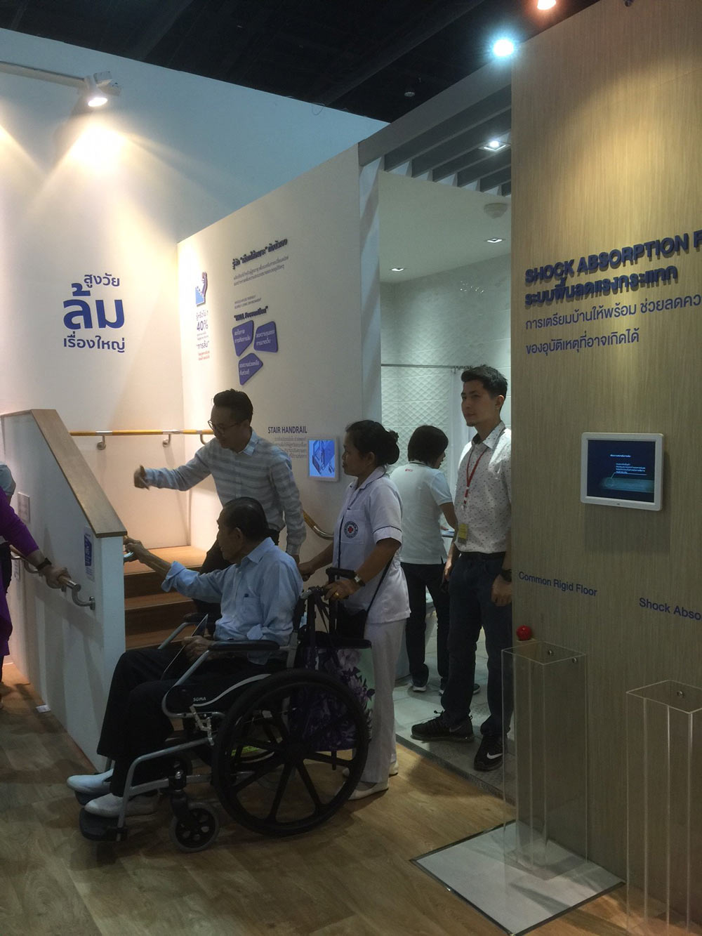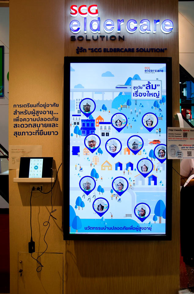 นอกจากนี้ ยังให้ผู้เข้าชมบูธได้ร่วมสนุกและแชร์ความรู้เกี่ยวกับการออกแบบและเลือกผลิตภัณฑ์ที่เหมาะสมสำหรับผู้สูงอายุ ในรูปแบบ InteractivePhoto Booth และแชร์ผ่าน Social Media รวมทั้งมีการจำลองการใช้ชีวิตประจำวันของผู้สูงอายุภายในบ้าน ในรูปแบบของ Motion Graphic บน Multi-screen เพื่อให้มีความน่าสนใจและเข้าใจมากขึ้นด้วยการนำเสนอในธีม “สูงวัย “ล้ม” เรื่องใหญ่” ที่ต้องการให้คนหันมาสนใจและใส่ใจในการเตรียมบ้านให้ปลอดภัยเพื่อผู้สูงอายุ ตามแนวทางการดำเนินงานหลักของธุรกิจ