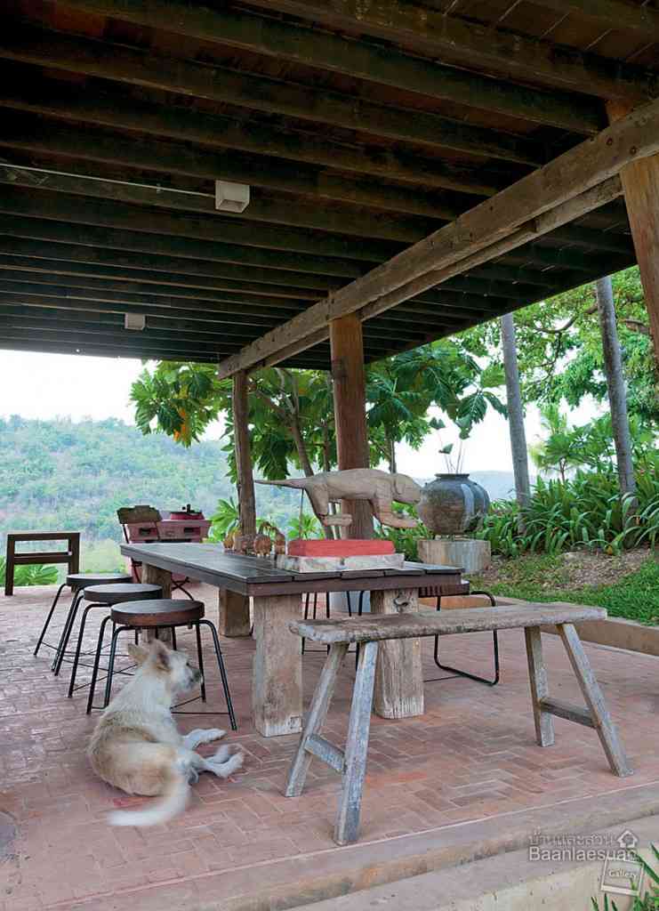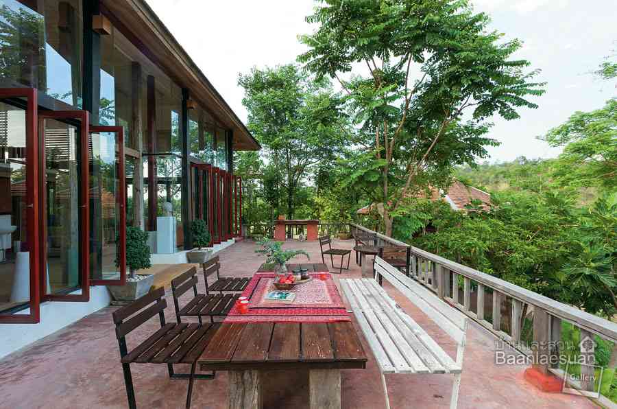 ฤดูฝนค่อยๆย่างกรายเข้ามาแทนที่ฤดูร้อนอย่างช้าๆ ต้นไม้ใบหญ้าที่เหี่ยวแห้งจนเป็นสีน้ำตาลไหม้เกรียมจากไอแดดกลับเขียวขจีมี ชีวิตชีวาขึ้นอีกครั้ง ผู้เฝ้ามองอย่างเราก็พลอยสดชื่นและสุขใจไปด้วย ผมและทีมงาน “บ้านและสวน” ออกเดินทางไปยังอำเภอมวกเหล็ก จังหวัดสระบุรีในช่วงที่ฝนแรกของปีเริ่มโปรยปราย เรากำลังไปเยี่ยมชม บ้านพักตากอากาศ หลังหนึ่งที่สร้างเพื่อเป็นที่พักผ่อน หย่อนใจส่วนตัว