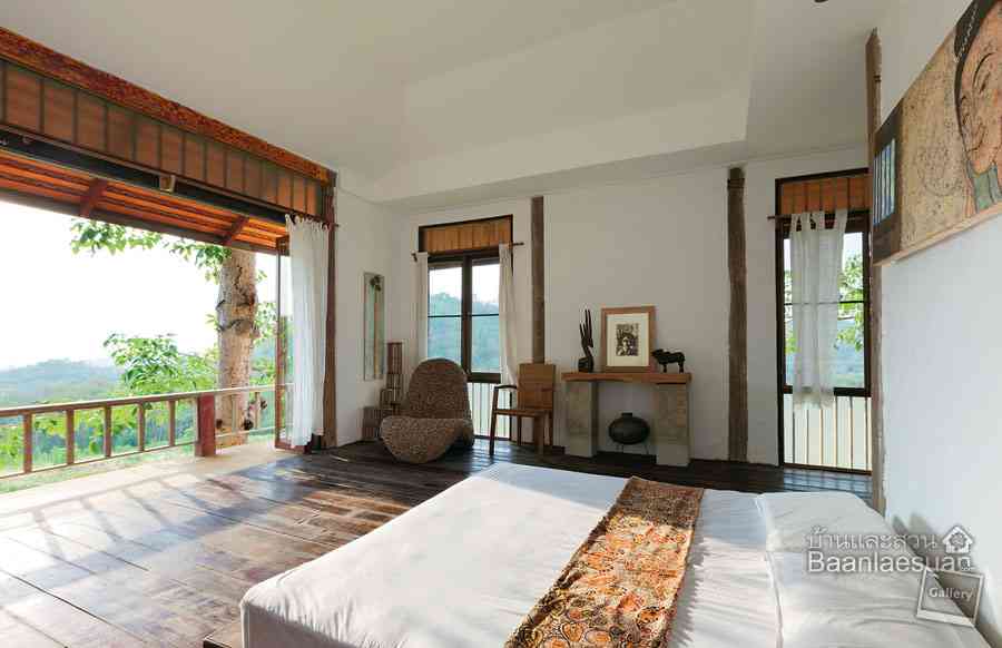 ถัดเข้าไปด้านในเป็นห้องนอนหลักของคุณอุดมและครอบครัว อีกด้านหนึ่งเป็นเรือนไม้แบบไทยโบราณ เจ้าของบ้านซื้อเรือนยุ้งข้าวเก่ามาปรับใหม่จนกลายเป็นเรือนพักอาศัยอีกหลัง ที่มีสัดส่วนสวยงาม ดูสอดคล้องกับอาคารหลังอื่นๆเป็นอย่างดี