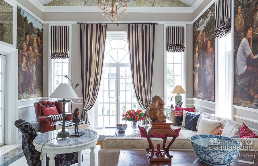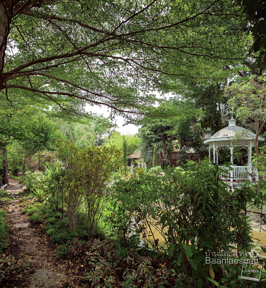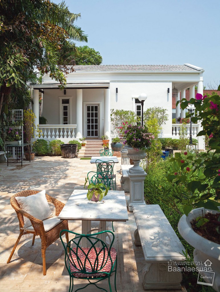 บ้านหลังนี้ตั้งอยู่บนที่ดินขนาดสองไร่ใน กรุงเทพฯนี่เอง ซึ่งเคยลง “บ้านและสวน” ไปเมื่อประมาณยี่สิบห้าปีก่อน ตัวบ้านกินพื้นที่หนึ่งในสี่ของที่ดิน ส่วนที่เหลือเป็นสวนสวย แต่ตอนนี้มีการปรับปรุงใหม่ โดยคุณอำนาจได้ต่อเติมห้องเพิ่ม เพื่อรองรับการใช้งานได้เหมาะสมยิ่งขึ้น