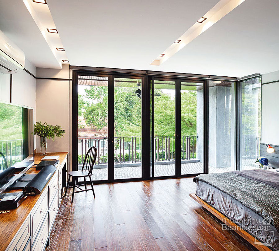 หลายครั้งที่เรายึดติดกับค่ามาตรฐานมากเกิน ไปว่าควรจะเป็นเท่านั้นเท่านี้ตามที่ใครกำหนด แต่กับบางเรื่อง ค่ามาตรฐานเหล่านั้นเป็นเพียงค่ากลางๆ นั่นแสดงว่ายิ่งมากก็ยิ่งดี เช่นเดียวกับบ้านหลังนี้ ทำฝ้าสูงเข้าไว้ แล้วค่าความสุขก็จะสูงตาม ผมเชื่ออย่างนั้นนะ