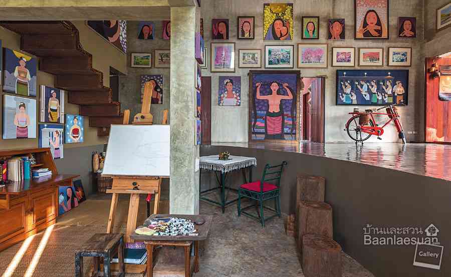 สีสันของภาพวาดที่แขวนตามมุมต่างๆของบ้าน ช่วยสร้างความสดใสและมีชีวิตชีวา ผลงานของคุณธีระยุทรและคุณอรพินเป็นที่รู้จักในเมืองเชียงราย ฝ่ายวัฒนธรรมของจังหวัดจึงขอให้เข้าร่วมกลุ่มบ้านศิลปิน เพื่อส่งเสริมการท่องเที่ยวด้านศิลปวัฒนธรรมนับตั้งแต่ยังอยู่ในระหว่างการ ก่อสร้าง ล่าสุดคุณธีระยุทรกำลังก่อสร้างอีกหลังติดกันเพื่อทำเป็นหอศิลป์โดยตรง
