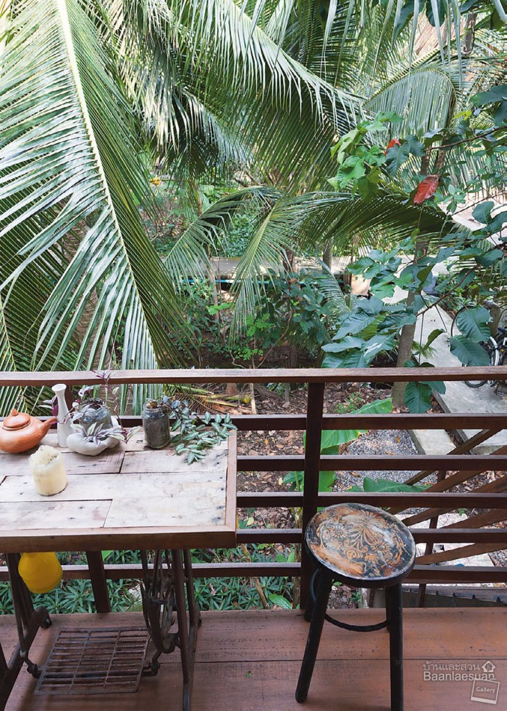 แบบบ้านไม้ในสวน หลังนี้ เป็นบ้านที่บรรณาธิการอำนวยการ นิตยสารบ้านและสวน ได้พบเจ้าของบ้านฝ่ายชายโดยบังเอิญแถวถนนอังรีดูนังต์ และพูดคุยเรื่องผลงานภาพถ่ายจากกล้องรูเข็มในประเทศอัฟกานิสถาน รวมทั้งยังได้ทราบว่าเขาและครอบครัวมีแนวคิดในการใช้ชีวิตที่น่าสนใจ และปลูกบ้านไม้ในสวนย่านบางน้ำผึ้ง จังหวัดสมุทรปราการ คำบอกเล่าอย่างออกรสนั้น ทำให้ฉันต้องกลับไปอ่านหนังสือบ้านบ้านอย่างละเอียดอีกครั้ง และตามไปดูใน บล็อก  ของเขาและภรรยา ซึ่งทำให้ฉันได้เห็นอีกมุมมองหนึ่งของชาวต่างชาติที่ดำเนินชีวิตตามวิถีแบบ ไทย รู้สึกได้ถึงความเรียบง่ายและความสุขที่อยู่ใกล้ตัว จนอยากส่งต่อให้คนไทยแท้ๆได้ย้อนกลับมาคิดถึงวิถีชีวิตแบบดั้งเดิมอีกครั้ง