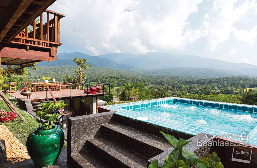 บ้านไม้ เรือนล้านนาประยุกต์ในอ้อมกอดของขุนเขา