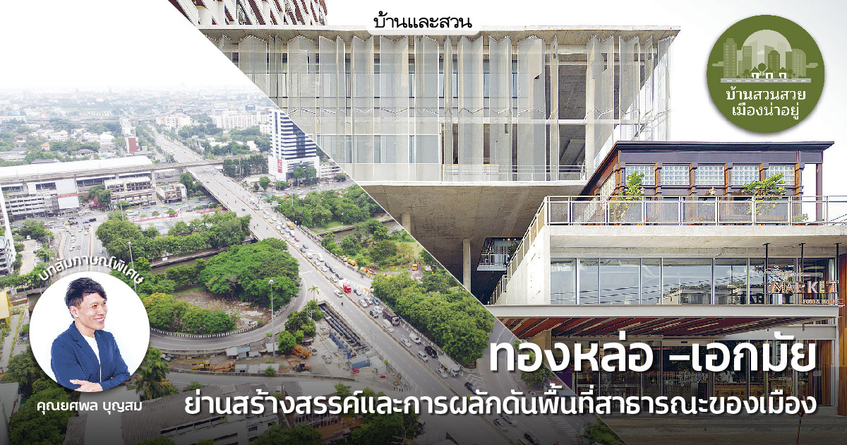 ทองหล่อ – เอกมัย เป็นอีกย่านที่มีเอกลักษณ์ทั้งในด้านสถาปัตยกรรมและผังเมือง รวมถึงวิถีชีวิตของผู้คนในย่านที่ปรับเปลี่ยนตามยุคสมัยอย่างน่าสนใจ เป็นที่หมายตาทั้งนักลงทุนและนักสร้างสรรค์ จึงเห็นความเปลี่ยนแปลงทั้งบ้านพักอาศัยเดิมที่ปรับเป็นพื้นที่ธุรกิจ มีโครงอสังหาริมทรัพย์สุดหรู และมีการผลักดันโครงการพื้นที่สาธารณะระดับเมือง มาทำความรู้จักย่านทองหล่อ-เอกมัย ผ่านมุมมองของ คุณยศพล บุญสม ภูมิสถาปนิก-ผู้บริหารบริษัทฉมา จำกัด บริษัทฉมาโซเอ็น จำกัด และผู้ก่อตั้งแพลตฟอร์ม we!park องค์กรไม่แสวงหาผลกำไร ที่เชิญชวนทุกคนมามีส่วนร่วมในการสร้างพื้นที่สาธารณะสีเขียว