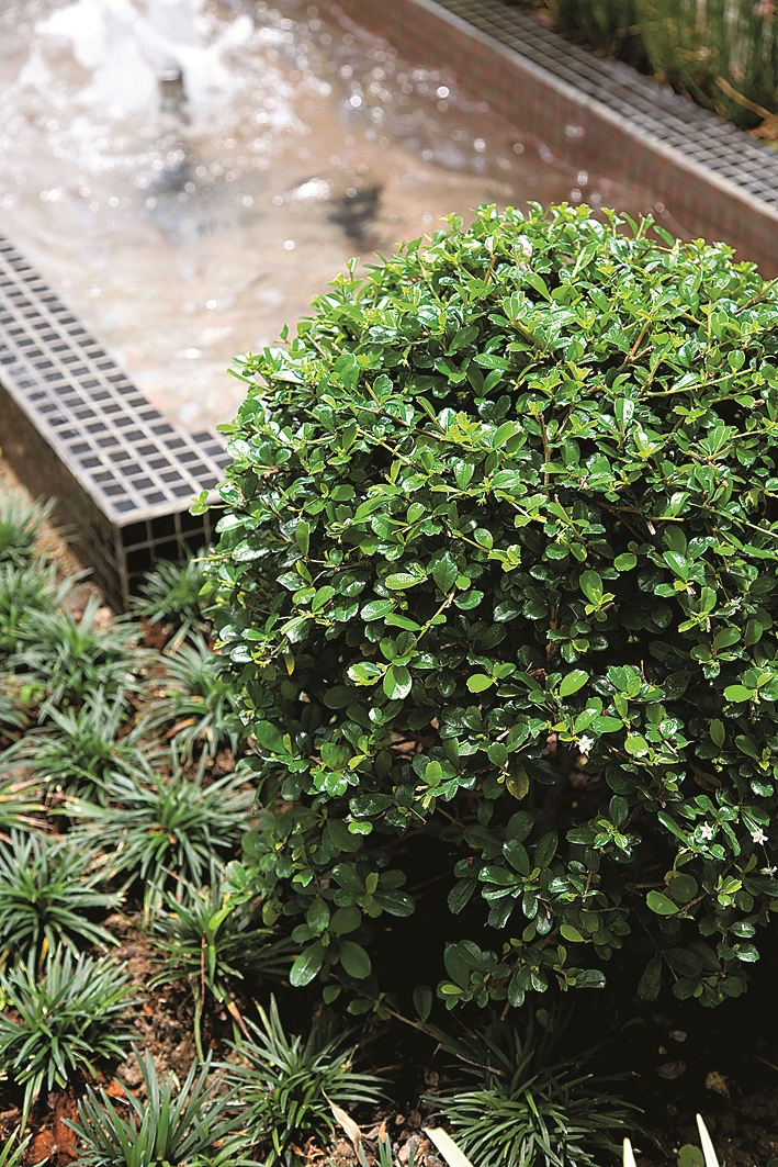 ลักษณะ ไม้พุ่มสูง 0.30-1 เมตร แผ่นใบสีเขียวเข้มเป็นมัน ออกดอกตามซอกใบ ขนาดเล็ก สีขาวมี 5 กลีบ ออกดอกตลอดปี ไม่ค่อยทิ้งใบ ได้รับความนิยมในการนำไปใช้เป็นไม้ตัดแต่ง หรือปลูกเป็นไม้รั้วทำขอบแปลง ชอบแสงแดดเต็มวัน ทนน้ำท่วมขัง