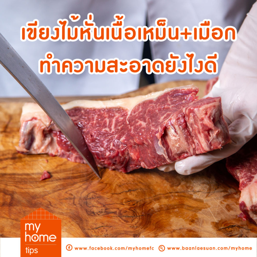 ทำไงดีเอาเขียงไม้ไปหั่นเนื้อสัตว์ ตอนนี้ทั้งเหม็น ทั้งเป็นเมือก