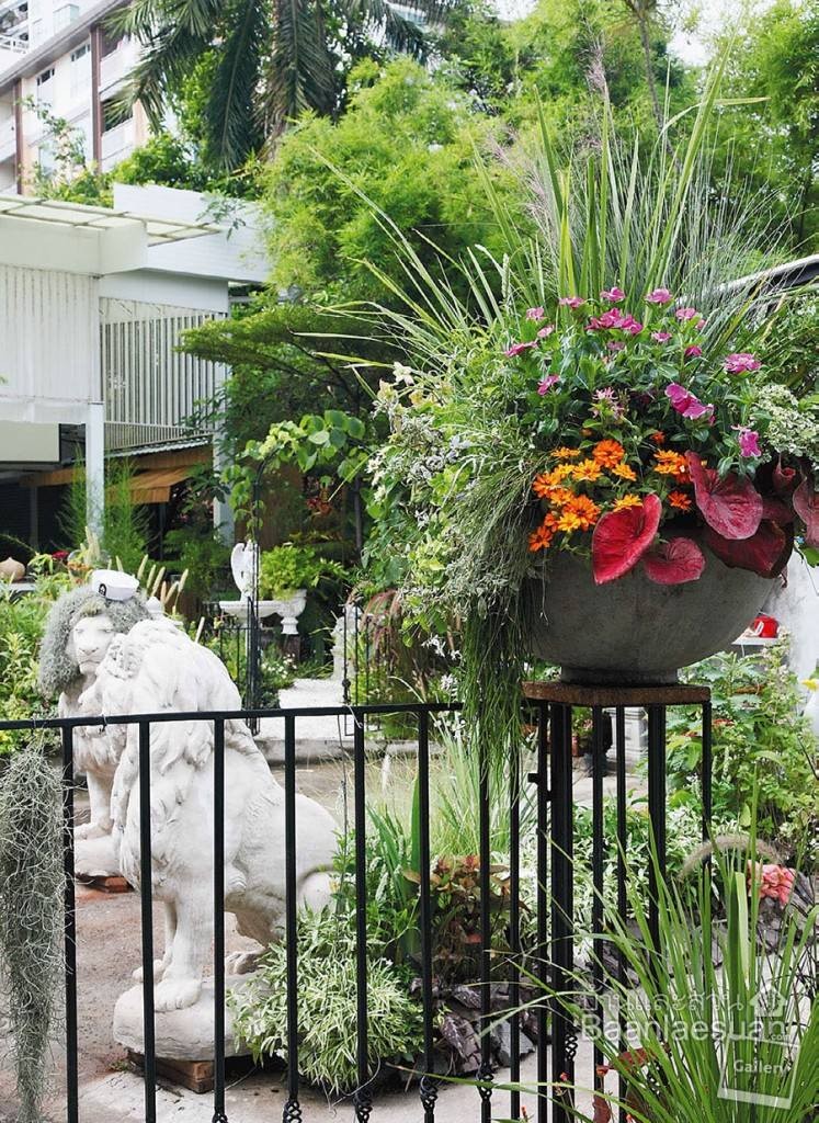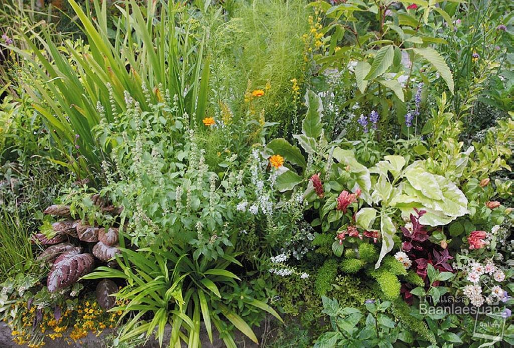 นอกจากการตกแต่งที่แปลกใหม่ไม่ซ้ำใครแล้ว การเลือกพรรณไม้และการจัดวางภายในสวนยังมีแนวคิดน่าสนใจไม่แพ้กัน โดยผสมผสานไม้ดอกและไม้ประดับแทรกไปกับไม้เมืองร้อน ไม้ต่างประเทศ และผักสวนครัว น่าแปลกใจที่ทุกต้นเจริญเติบโตได้เป็นอย่างดี