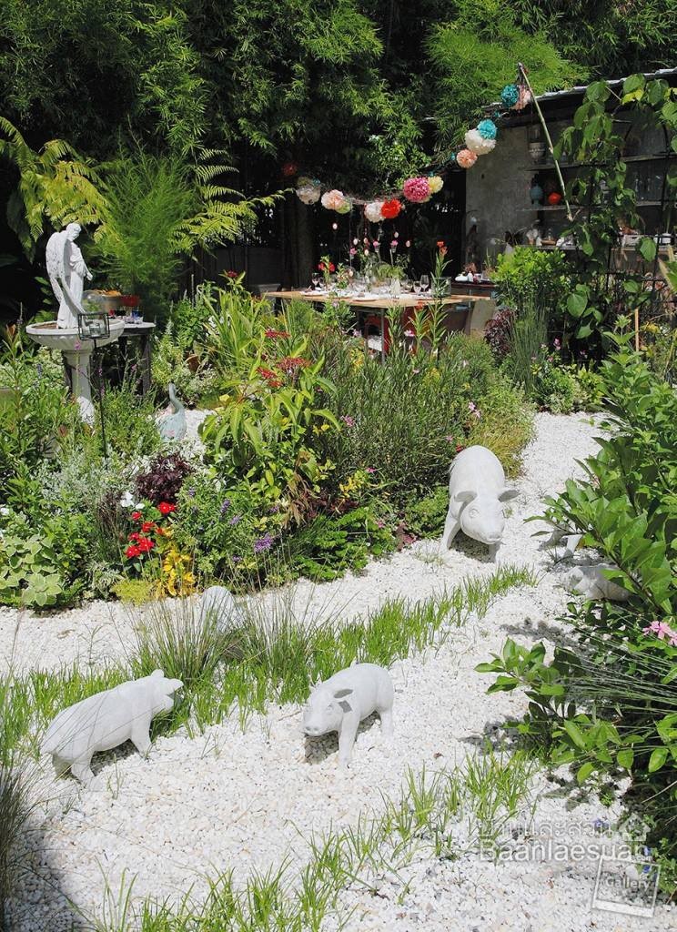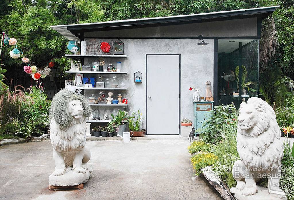 หลังรับประทานอาหารเสร็จแล้ว เราลุกเดินชมสวนต่อเพื่อย่อยอาหารไปในตัว แม้สวนนี้จะมีขนาดเล็ก แต่ก็อัดแน่นด้วยไอเดียการตกแต่งแทรกไปในทุกส่วน โดยเฉพาะตุ๊กตาปูนปั้นรูปแบบดูแปลกตาที่คุณป็อบออกแบบเอง ทั้งครอบครัวหมูน้อยในสวนซึ่งไม่ได้พบเห็นบ่อยนัก ตุ๊กตาสิงโตที่ตกแต่งด้วยต้นเคราฤๅษีเป็นขนแผงคอ และตุ๊กตาเป็ดคาบถุงใส่ไข่ ชวนให้เกิดอารมณ์ขันในระหว่างชมสวนได้เป็นอย่างดี