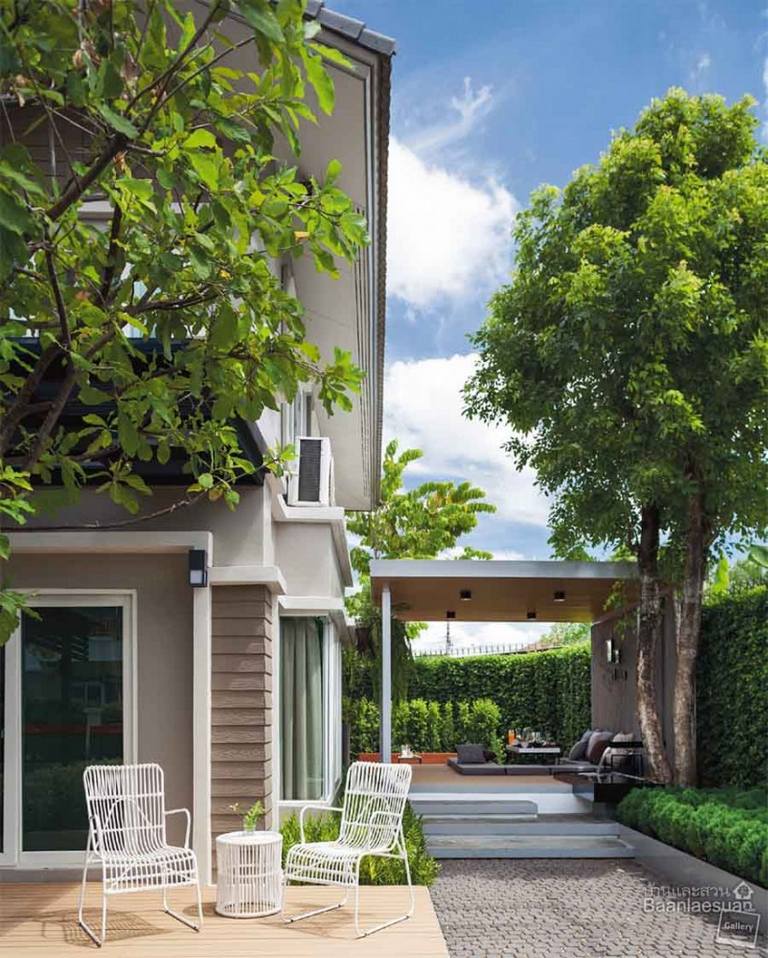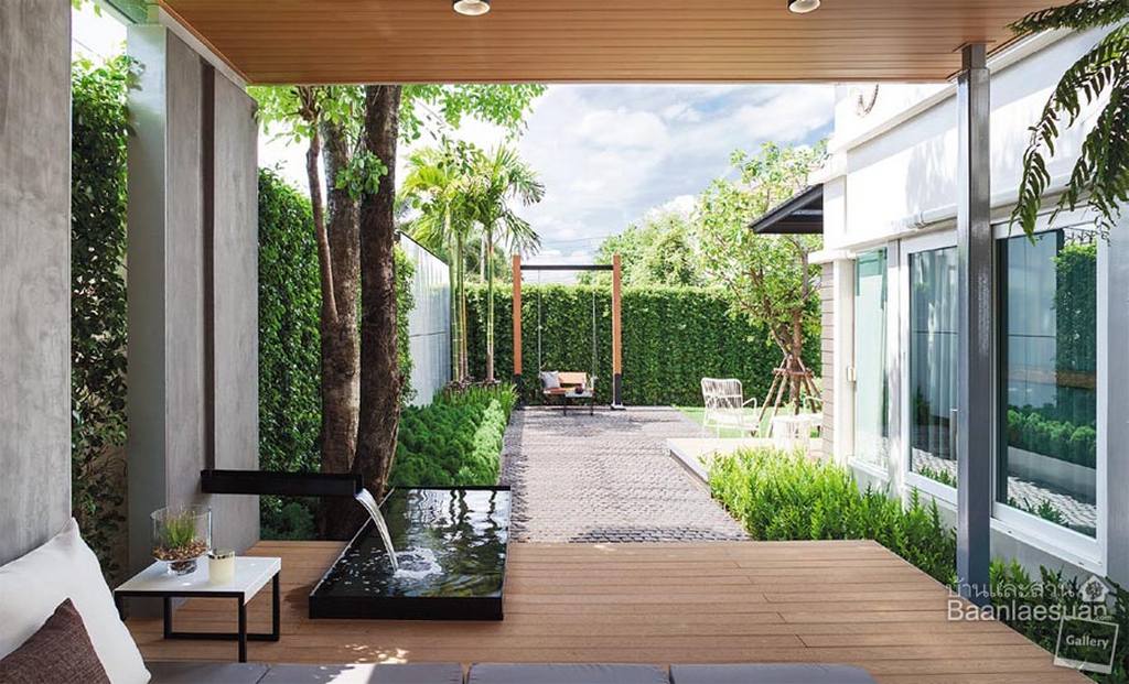 สวนโมเดิร์นข้างบ้านที่เว้นที่ว่างให้บรรยากาศโปร่งโล่ง
