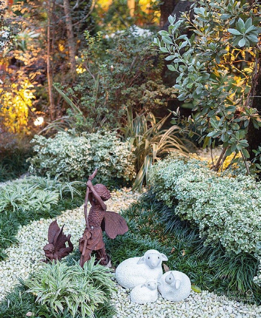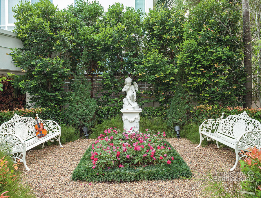 Owners : “คุณหนุ่มมาเสนอไอเดียและใช้เวลาในการคิดละเอียดมาก แล้วก็จะถามคนที่บ้านว่าชอบอะไรยังไง คิดถึงหลาน เขาสังเกตว่าเรามีหลานเป็นดวงใจของที่นี่ ก็จะใส่ของตกแต่งที่สะท้อนความสดใสของหลานออกมา เช่น รูปปั้นคิวปิด แล้วก็คิดธีมออกมาเป็น 4 แบบ ให้แต่ละมุมสวนมีเรื่องราวของฤดูต่าง ๆ ส่วนตัวเราเชื่อสถาปนิก เมื่อคลิกกันแล้วเราปล่อยเลย เหมือนกับเราได้เจอคนที่รู้จักกันหมด เขาเสนออะไรก็คิดถึงเราด้วย เหมือนเป็นสวนของตัวเอง เข้ามาดูแลตลอด แล้วก็ช่วยเราประหยัดด้วย”