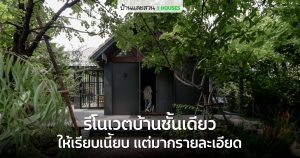 “จริงๆ บ้านหลังนี้ถูกปล่อยทิ้งร้างไว้ร่วม 10 ปีแล้ว กว่าเราจะเข้ามาปรับปรุงเพื่ออยู่อาศัย เพราะเป็นหมู่บ้านที่อยู่ติดกับโรงเรียนของลูกๆ ช่วยให้เราสะดวกกับการเดินทางและใช้ชีวิตได้มีคุณภาพมากขึ้น แต่ต้องจัดการกับปัญหาเรื่องระบบและความทรุดโทรมของบ้านให้ดีก่อน ก็เลยให้คุณแพไพลิน สถาปนิกเข้ามาช่วยดูฟังก์ชันตัวอาคารใหม่ทั้งหมด” คุณแมน-วสุ ทองมีเพชร เจ้าของบ้านฝ่ายชายเริ่มต้นเล่าให้ฟัง