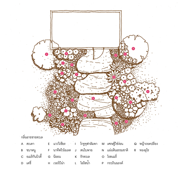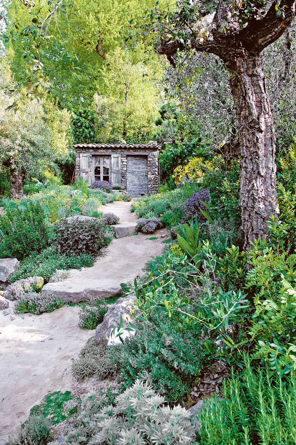 เอาใจคนที่หลงใหลเสน่ห์ของป่าแถบชายทะเลเมดิเตอร์เรเนียน ด้วยการจัดมุมสวนหน้าบ้านให้มีกลิ่นอายคล้ายคลึงกับภูมิประเทศในแถบนั้น เช่น การจัดวางก้อนหินน้อยใหญ่เรียงรายเป็นทางเดินสลับกับผืนทรายละเอียด ให้ความรู้สึกนุ่มนวลแต่ไม่ดูราบเรียบจนเกินไป สองข้างทางปลูกไม้ดอกคลุมดินเว้นจังหวะแทรกไปกับโขดหินคล้ายเกิดขึ้นเองตามธรรมชาติ