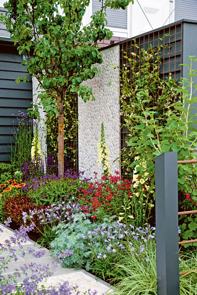 ไอเดียนี้เหมาะกับ : มุมหน้าบ้านทาวน์เฮ้าส์ที่ได้รับแสงแดดเต็มวันและต้องการสวนที่มีสีสันสดใสด้วยไม้ดอกหลากสี