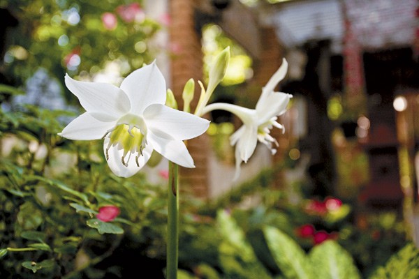 - ดอก : ดอกแบบซี่ร่มออกจากซอกใบกึ่งกลางต้น แต่ละช่อมี 5 – 10 ดอก กลีบรวมเชื่อมติดกันเป็นรูปแตร ปลายแยกเป็น 6 กลีบ สีขาว ชั้นมงกุฎเป็นรูปถ้วย หยักเป็นซี่ฟันขนาดใหญ่ เกสรเพศผู้ 6 อัน มีกลิ่นหอม