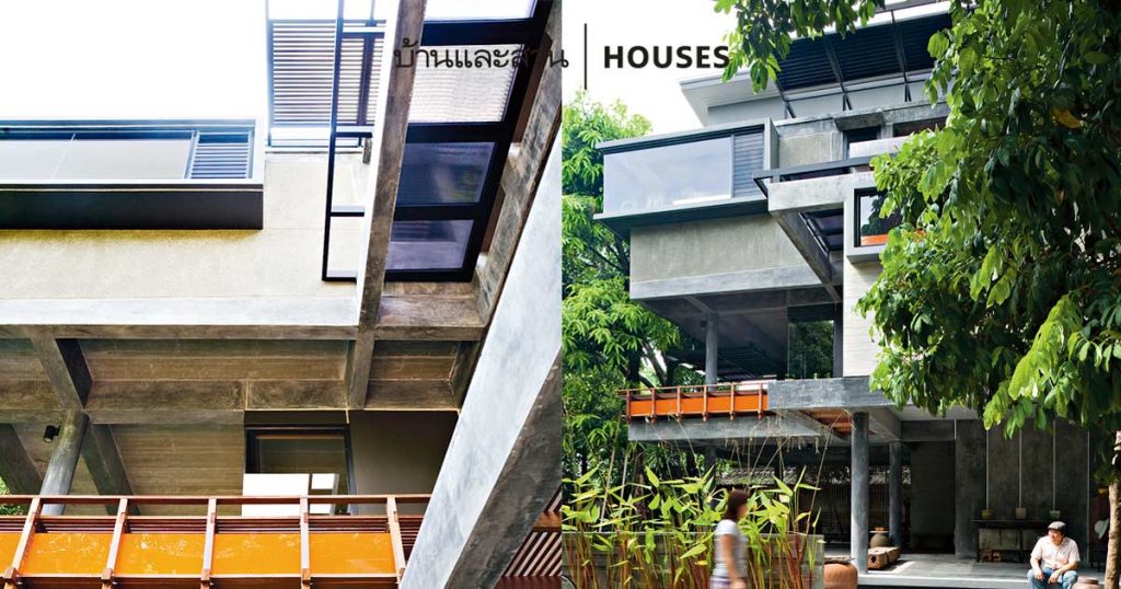 บ้านคอนกรีต ที่ออกแบบโดยผสมรวมสองวัฒนธรรมจากเจ้าของบ้านสองสัญชาติไว้ด้วยกันระหว่างไทยและญี่ปุ่น ทำให้บ้านมีลักษณะของใต้ถุนโล่งแบบไทยตกแต่งด้วยชุดเฟอร์นิเจอร์ไม้สไตล์ญี่ปุ่น มีฉากหลังเป็นระแนงไม้ซี่บางประกอบกันเป็นตาราง ขณะที่ชั้นสองมีห้องญี่ปุ่นขนาด 7 เสื่อทาทามิ องค์ประกอบต่างๆ เน้นให้มีความนอบน้อมและกลมกลืนไปกับธรรมชาติ เรียบง่ายแต่ชัดเจน