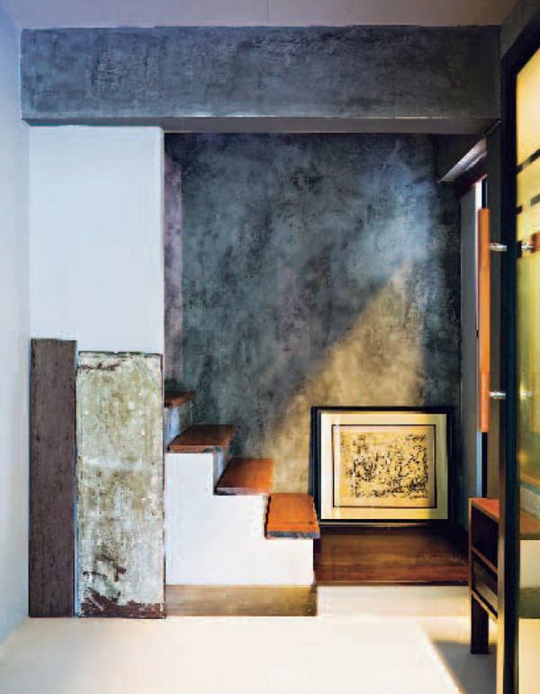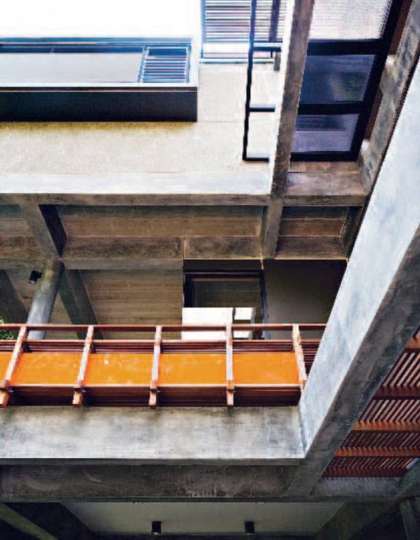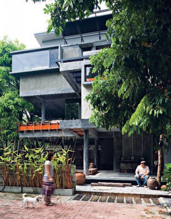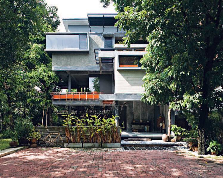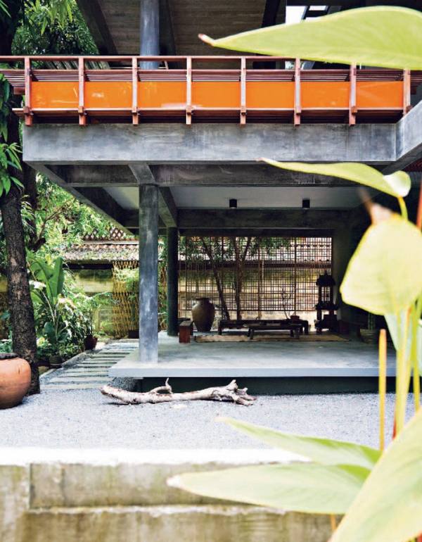 บ้านคอนกรีต ที่ออกแบบโดยผสมรวมสองวัฒนธรรมจากเจ้าของบ้านสองสัญชาติไว้ด้วยกันระหว่างไทยและญี่ปุ่น ทำให้บ้านมีลักษณะของใต้ถุนโล่งแบบไทยตกแต่งด้วยชุดเฟอร์นิเจอร์ไม้สไตล์ญี่ปุ่น มีฉากหลังเป็นระแนงไม้ซี่บางประกอบกันเป็นตาราง ขณะที่ชั้นสองมีห้องญี่ปุ่นขนาด 7 เสื่อทาทามิ องค์ประกอบต่างๆ เน้นให้มีความนอบน้อมและกลมกลืนไปกับธรรมชาติ เรียบง่ายแต่ชัดเจน