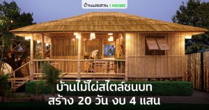 แบบบ้านสวนธรรมชาติ ที่สร้างขึ้นด้วยแนวคิดการผสมผสานไม้เก่าหลากประเภทเพื่อให้ได้บ้านไม้หลังใหม่ในงบประมาณที่ไม่สูงเกินไป พร้อมอาศัยสภาพแวดล้อมที่ร่มรื่นของสวนผลไม้เก่าในคลองดำเนินสะดวก ซึ่งมีต้นไม้เยอะ มีร่องน้ำ จึงเหมาะกับการเปิดช่องลมและยกใต้ถุนสูงให้ลมพัดผ่าน เพื่อช่วยลดทอนความร้อนของอากาศและทำให้บ้านเย็นสบายโดยไม่ต้องอาศัยเครื่องปรับอากาศเลย >> อ่านต่อ