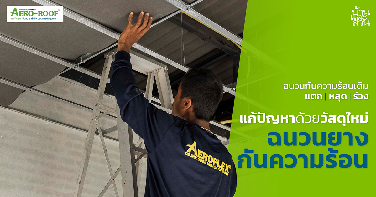 แต่ปัญหาส่วนใหญ่ที่เจอจากการติดฉนวน มักจะเป็นเรื่องอายุการใช้งานและวัสดุที่ไม่คงทน เมื่อติดไปสักพักฉนวนจะหลุด แตกเป็นขุย การเปลี่ยนหรือซ่อมแซมก็เป็นเรื่องยุ่งยากเพราะต้องถอดฝ้าออกจึงจะเปลี่ยนได้ วันนี้บ้านและสวนขอแนะนำฉนวนวัสดุใหม่ คือ ฉนวนยาง จาก AERO-ROOF เป็นนวัตกรรมที่ช่วยแก้ปัญหาเดิมเรื่องแตก หลุดล่อนเป็นขุย หรือเป็นฝุ่น ฉนวนยาง AERO-ROOF ทนทานใช้งานได้ยาวนาน ไม่ลามไฟ เป็นวัสดุเดียวกับที่ใช้ในโรงงาน โรงพยาบาล และอาคารขนาดใหญ่