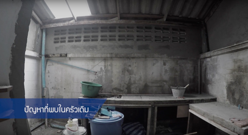 โจทย์ของวันนี้ก็คือการที่จากเดิมทาวน์เฮาส์หลังนี้มีครัวที่แยกออกจากตัวบ้าน เวลาฝนตกพื้นก็ลื่น เวลาใช้งานจึงมีโอกาสเกิดอุบัติเหตุ อากาศถ่ายเทไม่สะดวก การจัดวางเตาแก็ส จุดซักล้าง และเครื่องซักผ้าไม่กีดขวางกัน โดยในการปรับปรุงพื้นที่ครัวในครั้งนี้ อุปกรณ์ที่เราเตรียมก็คือ