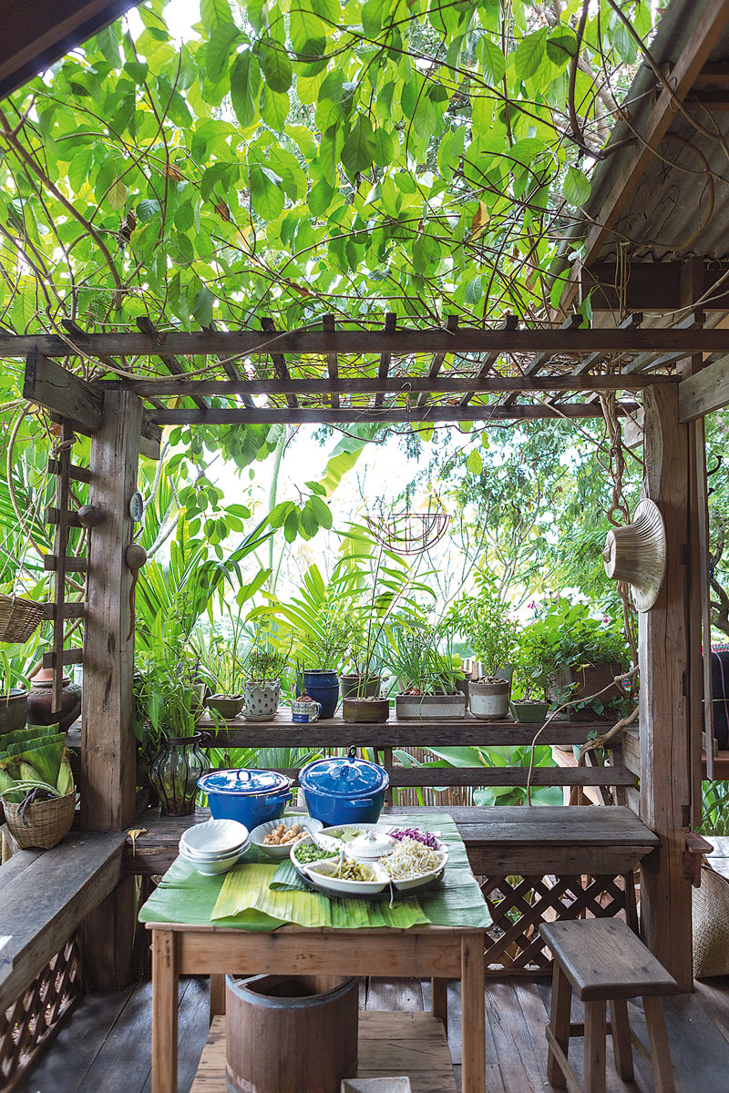 เธอก็พูดกลับมาว่า ‘งามแสงเดือนนะ’ จากนั้นเราตอบกลับไปว่า ‘แล้วเมื่อไรจะมาเยือนส่องหล้าบ้างล่ะ’ เลยกลายเป็นที่มาของการตั้งชื่อบ้านหลังนี้ค่ะ” นั่นเป็นคำบอกเล่าของ คุณศิริงาม ยาวิราช เจ้าของ บ้านไม้ หลังนี้ ซึ่งคงสังเกตเห็นว่าเรายืนมองชื่อบ้านอยู่นาน ชื่อนี้ฟังดูเพราะพริ้งและชวนให้นึกถึงบทเพลงเก่าที่มีชื่อนี้เช่นกัน สื่อความนัยที่ว่าบ้านนี้มีความร่มเย็นและงดงาม