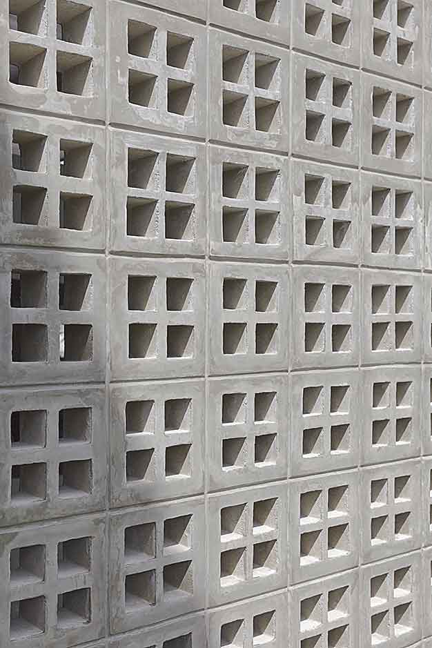 ไม้เก่าสีเข้มจึงแสดงตัวอยู่บนผนังปูนเปลือยสีเทาของบ้านหลังนี้อย่างโดดเด่นแต่อบอุ่นไปพร้อมกัน เมื่อสังเกตส่วนอื่นๆในบ้านสิ่งที่ช่วยส่งเสริมให้องค์ประกอบต่างๆจากบ้านหลังเก่าดูโดดเด่นขึ้นมา ก็คือการเลือกใช้วัสดุเรียบง่ายสีพื้นอย่างปูนเปลือย ผนังสีเทา โครงเหล็ก H-Beam ที่มีเส้นสายเฉียบคม และบล็อกช่องลมรูปสี่เหลี่ยม ทั้งภายนอกและภายในของบ้านหลังนี้ โดยออกแบบไว้อย่างพอดิบพอดี เป็นจังหวะเก่าและใหม่ที่สลับจัดวางองค์ประกอบได้อย่างลงตัว