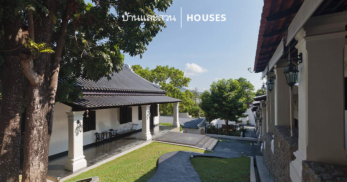 ศาลาจัดเลี้ยงของครอบครัวเจริญนวรัตน์โดดเด่นด้วยสถาปัตยกรรมที่ดูโปร่ง โล่งสบาย ลักษณะหลังคาเป็นจั่วโล่งโดยไม่ใช้คานแบบธรรมดาหรือโครงทรัสต์รับน้ำหนักเหมือนอาคารทั่วไป แต่ใช้โครงสร้างหลังคาในลักษณะโครงเรือที่คว่ำอยู่บนเสารับน้ำหนัก หรือใช้โครงหลังคารับน้ำหนักในตัวเอง เมื่อเดินอ้อมผ่านสนามหญ้าไปทางด้านหลัง สวนขนาดเล็กก็นำเราไปสู่บ้านแสนรักที่ตั้งใจมาเยือน