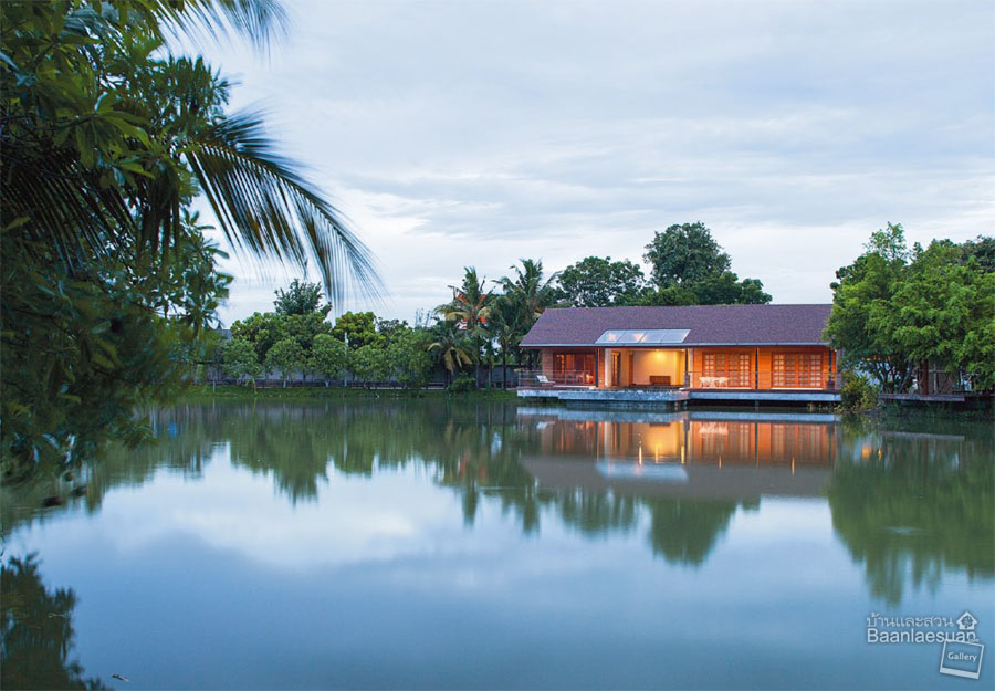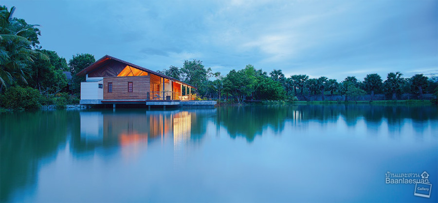 บ้านไม้ริมน้ำ สไตล์โมเดิร์นชั้นเดียวหลังนี้สร้างแรงบันดาลใจให้เราตั้งแต่แรกเห็น คุณวรพจน์ เตชะอำนวยสุข สถาปนิกผู้ออกแบบจากบริษัทโมโนเทลโล จำกัด เล่าที่มาของบ้านให้ฟังคร่าวๆว่า